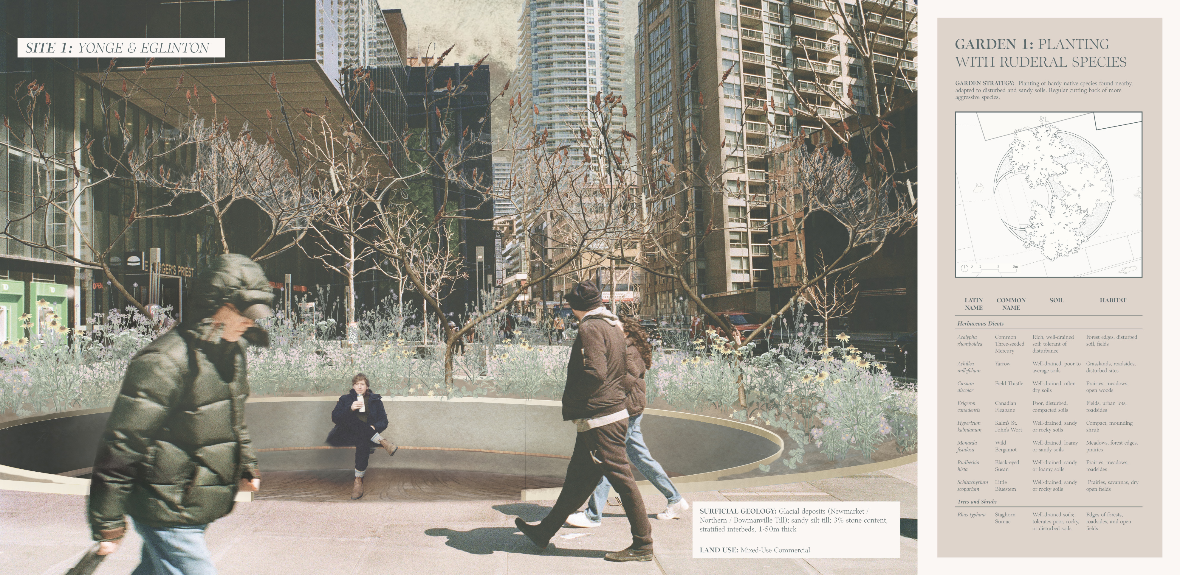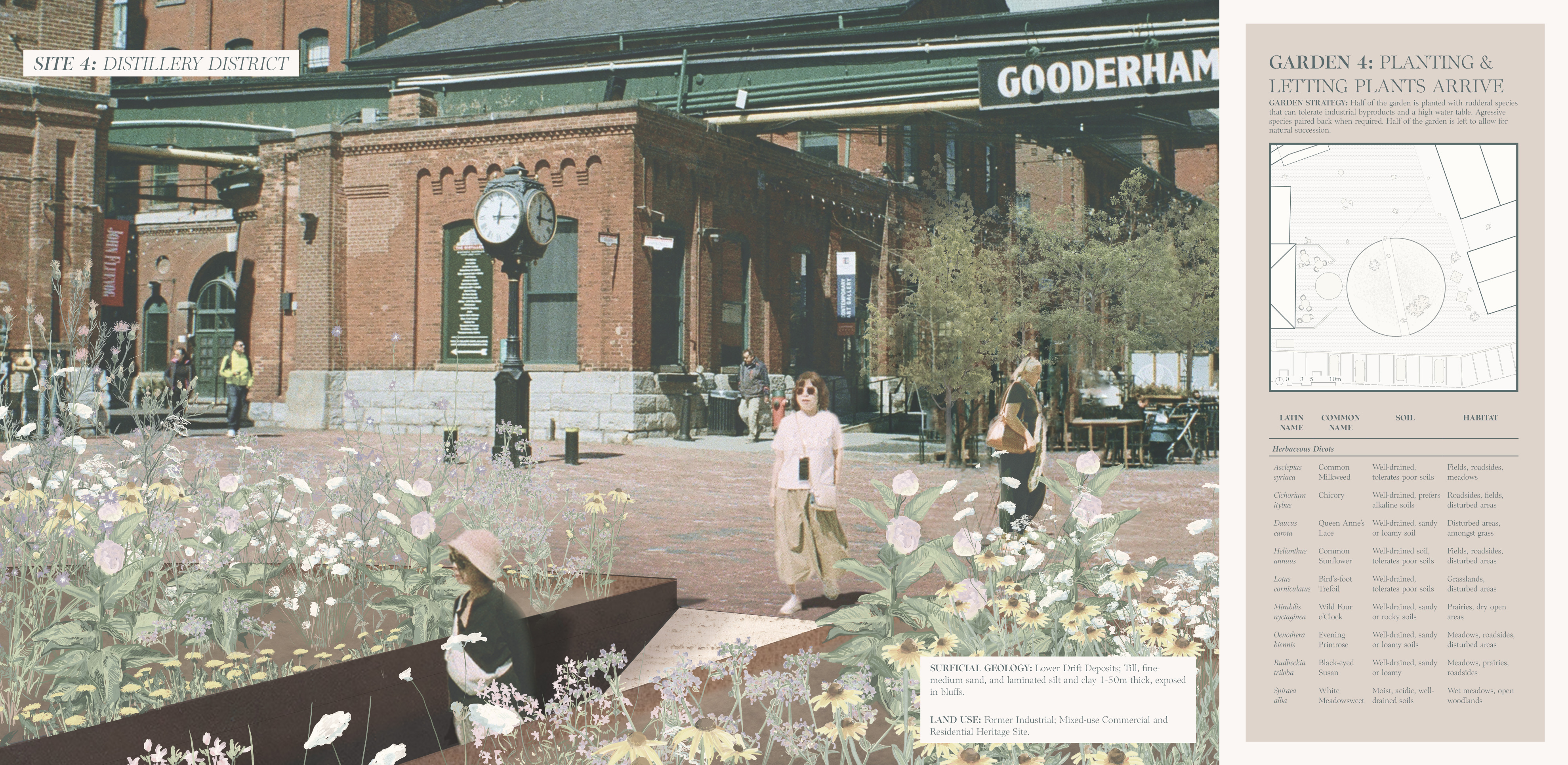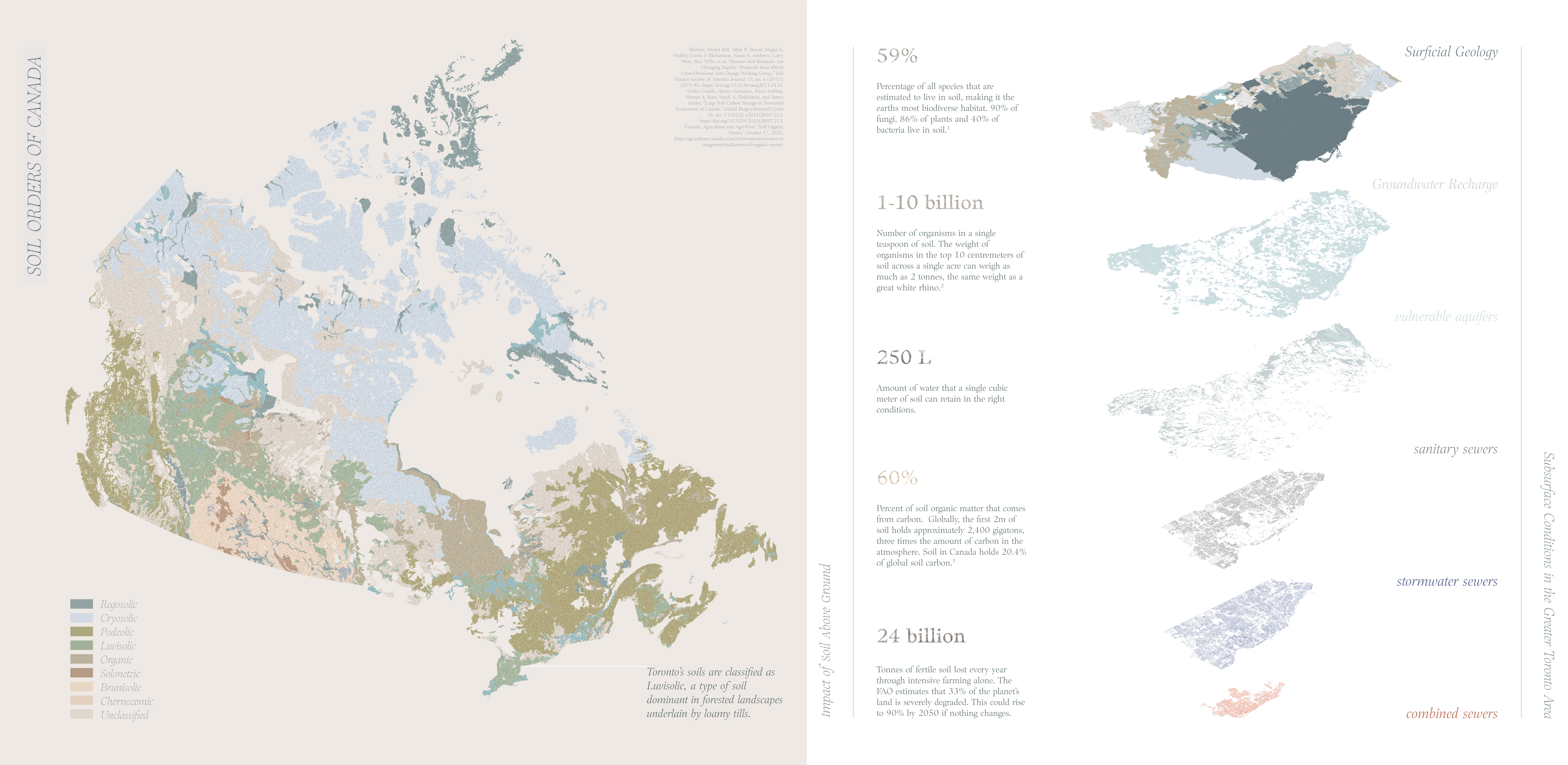 Martin received the top honour in the general design category for her Master of Landscape Architecture project, “Opaque Ground: Reimagining Human-Soil Relations in the Lower Don.” Her project proposes an urban soil survey followed by the creation of experimental gardens in existing soil along a 10-kilometer trail in Toronto’s lower Don Valley sub-watershed. The project promotes soil literacy by demonstrating its role in regulating water cycles, storing carbon and sustaining life. Her faculty advisor was Daniels Associate Professor Alissa North.